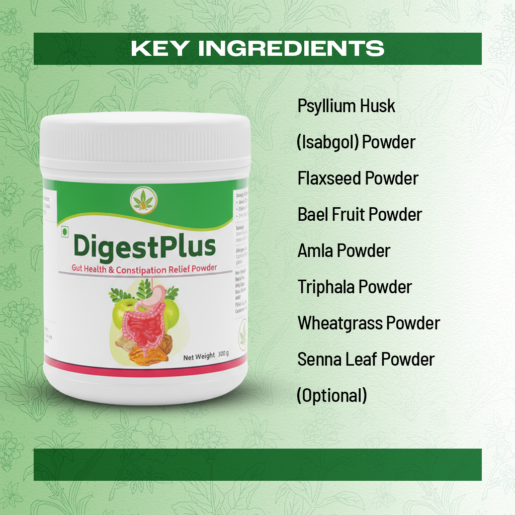 Our Gut Health & Constipation Relief Powder is a natural blend of time-tested Ayurvedic herbs and