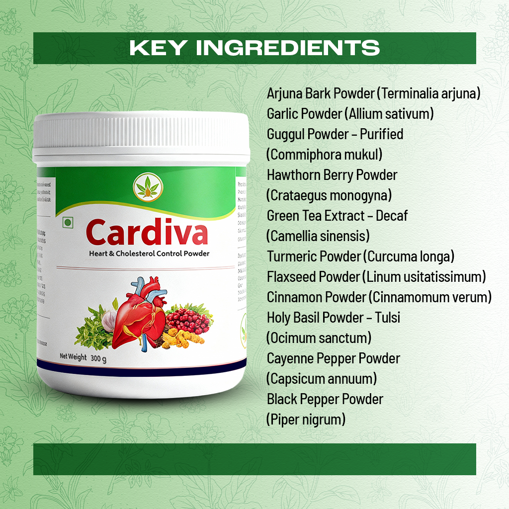 Our Heart & Cholesterol Control Powder is a unique blend of 11 powerful herbs and natural ingredients,